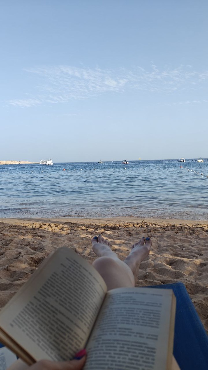 Но в отпуске у меня преимущество. Передвигаюсь медленно, но стратегически: по маршруту «шведский стол → море → шезлонг → снова шведский стол». У мыслей на такой дистанции шансов почти нет. Много читаю и не только состав десертов и таблички «осторожно, скользко». Написала подозрительно много для человека, который планировал только лежать и драматично смотреть на горизонт. Всё обязательно опубликую. Как только найду в себе силы открыть ноутбук и не заказать при этом что-нибудь освежающее. А пока просто гедонистическое фото. Из серии «я, книга и мое умение отдыхать так, будто это тоже тяжелая работа». Расскажите лучше вы: что сейчас читаете?