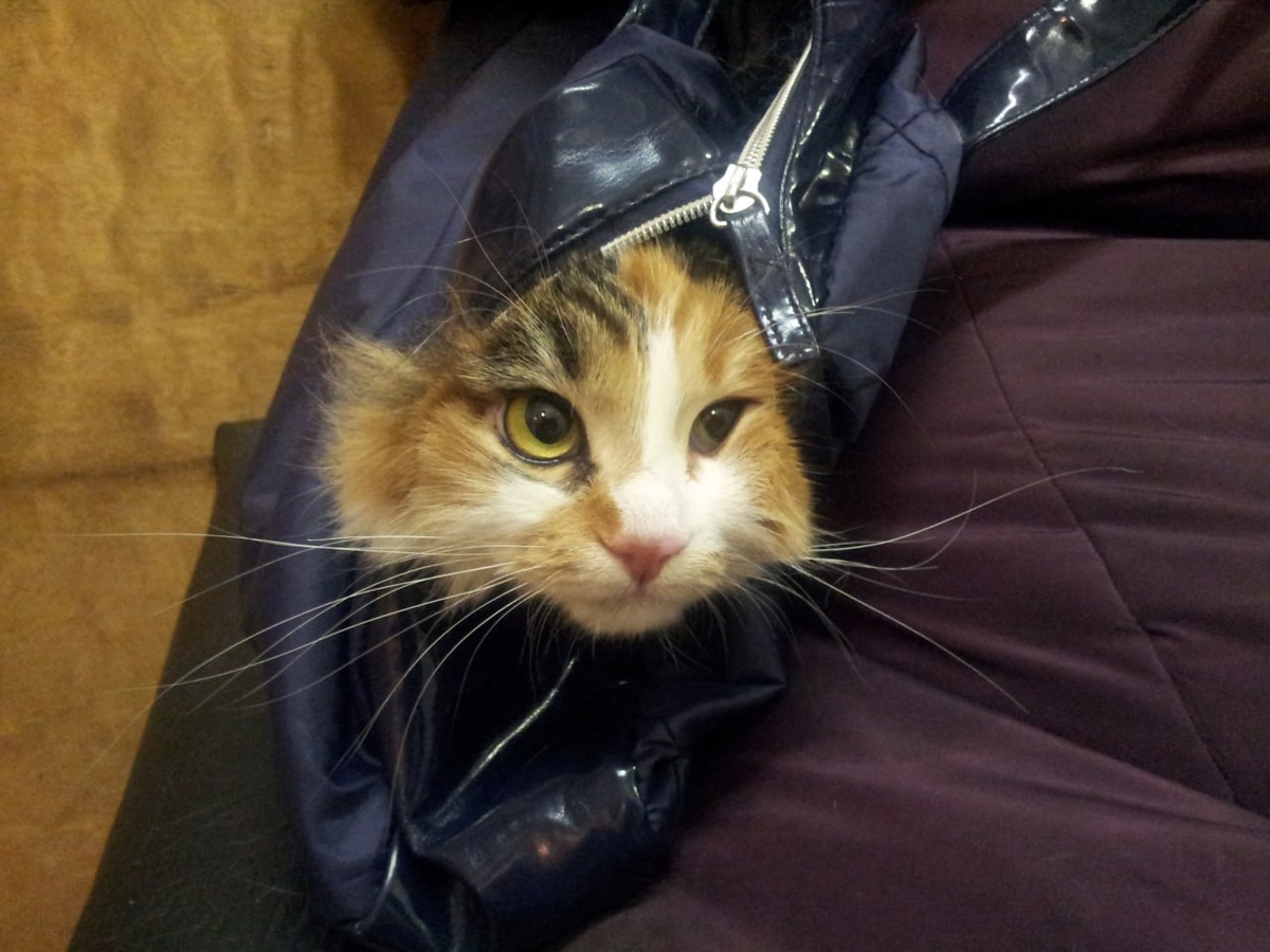 Когда на прием принесли в сумке, то с одной стороны - неудобно, а с другой - ближе к хозяйке, а потому спокойнее. Наши. Любим.