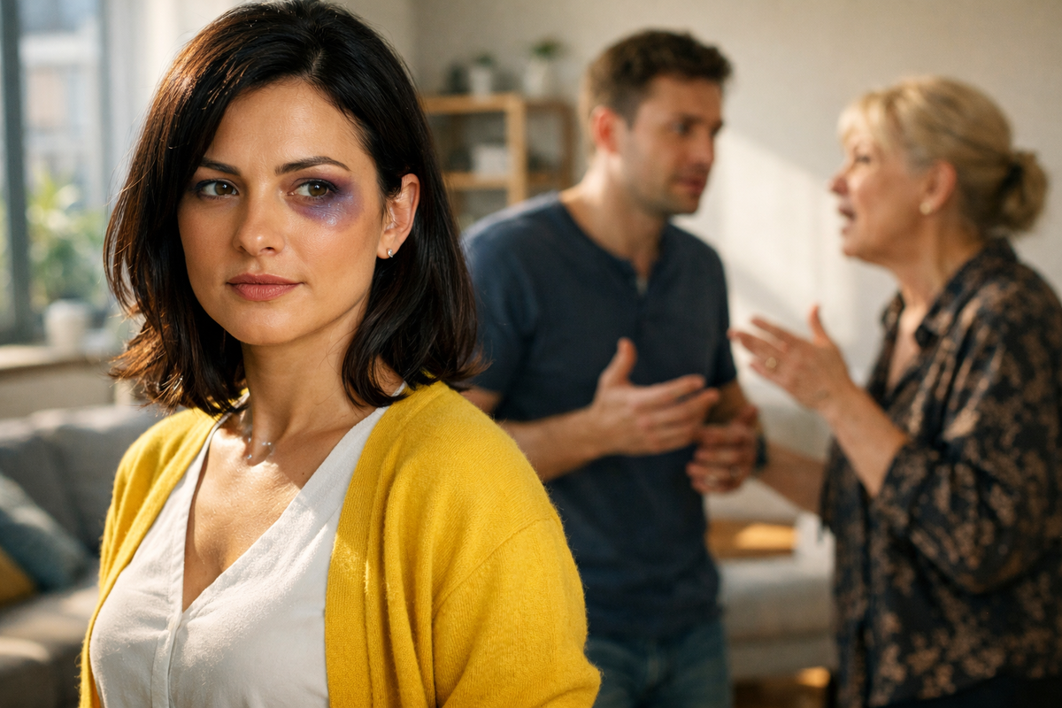 Лидия Николаевна ворвалась в прихожую, уже готовая обрушить гнев на сына. Но, увидев Елену, остановилась как вкопанная. Её взгляд прилип к огромному, багрово-синему фингалу, обезобразившему лицо невестки.