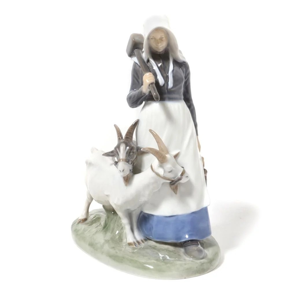 Royal Copenhagen, 1962 Фарфоровая статуэтка «Девушка с козами», ручная подглазурная роспись. Дания, Копенгаген, Royal Copenhagen, 1962 г. Скульптор Chr. Thomsen (1860–1921; работал 1898–1920). Клеймо производителя, модель № 694 (выпускается с 1905 г.), инициалы художника MT. Высота 23 см, длина 19 см. Первый сорт, без сколов, повреждений и реставраций. Porcelain figurine “Girl with goats”, hand-painted underglaze. Denmark, Copenhagen, Royal Copenhagen, 1962. Sculptor Chr. Thomsen (1860–1921; worked 1898–1920). Factory mark, model 694 (since 1905), artist MT. Height 23 cm, length 19 cm. First sort, no chips, cracks, repairs. RC_694 (RCN_069). Стоимость лота: 65 500 ₽ Подробнее на нашем сайте