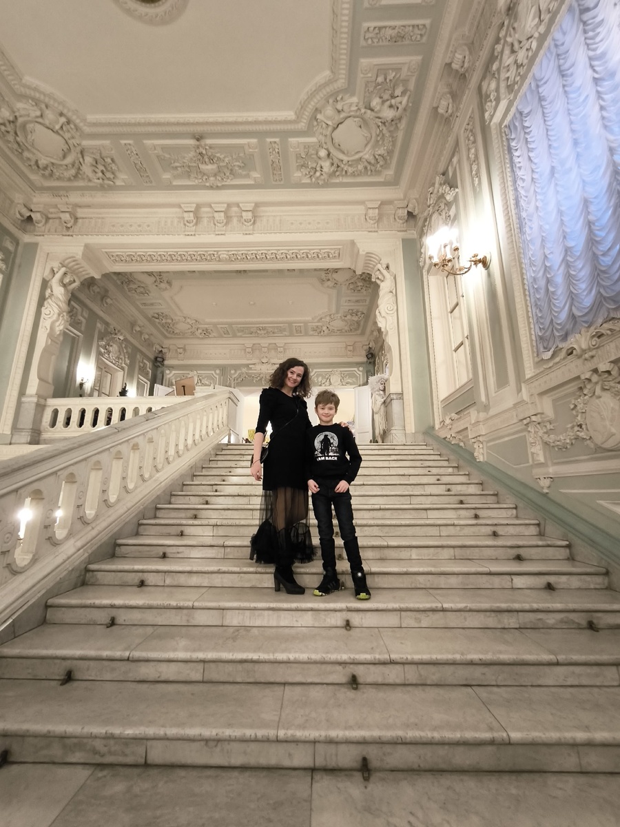 Последние годы я вообще разлюбила ёлки — везде толкотня, громкая музыка, одно и то же. В этом году уже махнула рукой — не пойдём никуда. Но в последний момент решили сходить в Дом Союзов — потому что ёлке здесь исполнялось 90 лет. Девяносто! Целая история. И я подумала: а что, если там осталось волшебство? Настоящее, не для галочки. Мы пришли в один из последних дней, заранее. И с порога попали не в суету, а в тишину. Нет, не в тишину — в шёпот. Шёпот снежинок на парадной лестнице, шёпот огней в старинных люстрах. Людей было немного, и от этого пространство Дома Союзов раскрылось во всей своей торжественной, почти домашней красоте. Пока ребёнок восторженно разглядывал помещение, я просто стояла, завороженная, и не могла оторвать глаз от подсвеченных барельефов, от лепнины под сводами. Лёва тихонько сказал: «Мама, тут как во дворце». И он был прав — это и был дворец. А потом фойе ожило. Но не громко — как будто мы заглянули в чей-то волшебный мир, где всё происходит само собой. Вот жонг