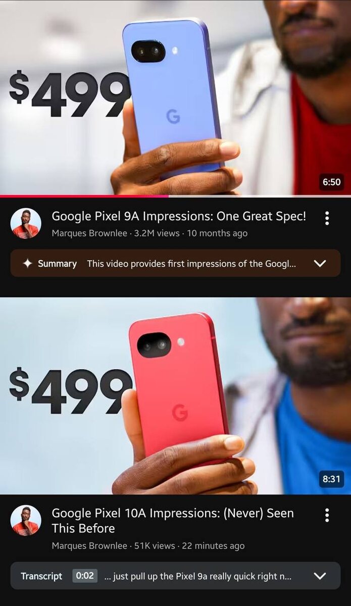 Главное изменение — камера не выступает. При этом основная камера 48 МП + сверхширокоугольная 13 МП — та же комбинация, что и у Pixel 9A. Процессор Tensor G4 (как и у Pixel 9A). Аккумулятор ~5100 мА·ч, немного прибавил. Как итог: претендент на самое минорное обновление опять смартфон от Google. Интересно что будет с Pixel 11.