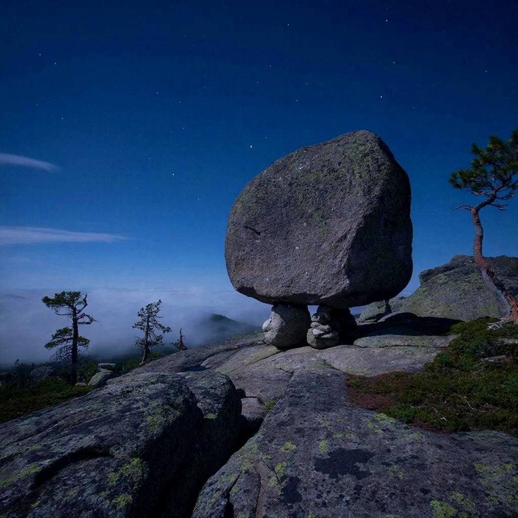 Представьте себе огромный валун, размером с добрый внедорожник, который идеально сбалансирован и поставлен на три-четыре маленьких плоских камня — «ножки».