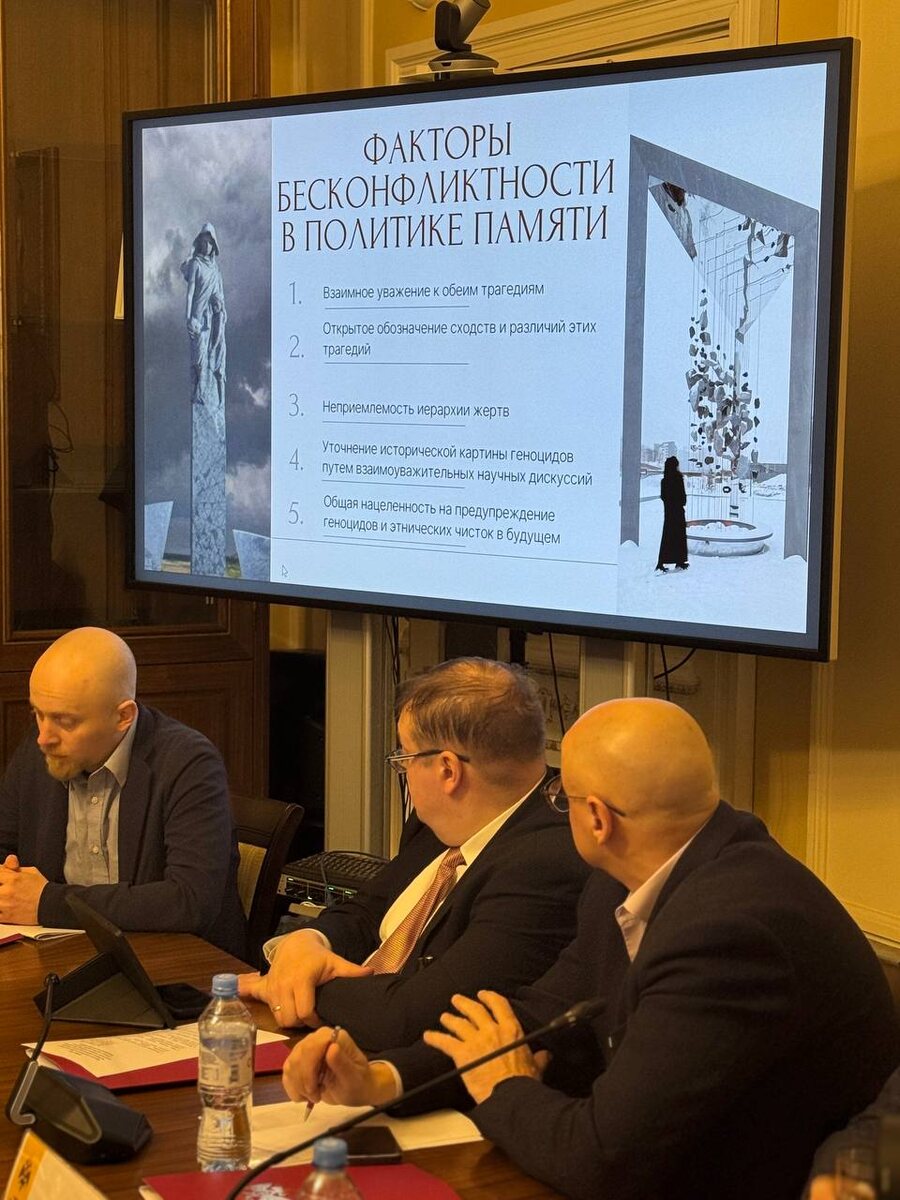 Сегодня в РВИО руководитель Комиссии по изучению геноцидов и военных преступлений Егор Яковлев представил 5 принципов «здоровой» политики памяти о жертвах нацистской «войны на уничтожение». 1️⃣Взаимное уважение к обеим трагедиям 2️⃣ Открытое обозначение сходств и различий этих трагедий 3️⃣ Неприемлемость иерархии жертв 4️⃣ Уточнение исторической картины геноцидов путем взаимоуважительных научных дискуссий 5️⃣ Общая нацеленность на предупреждение геноцидов и этнических чисток в будущем Мы чтим память всех жертв в годы нацистского террора. Наша страна в отличие от западных соседей, где уничтожают памятники Героям-освободителям, устраивают факельные шествия с участием пособников фашистов, используют гитлеровские методы в борьбе с «неугодными», хранит историческую память и не делит погибших на группы. РВИО и МИД России обращаются к мировому сообществу с призывом поддержать принципы бесконфликтности в политике памяти и присоединиться к общей работе противодействия неонацизму. #РВИО #нов