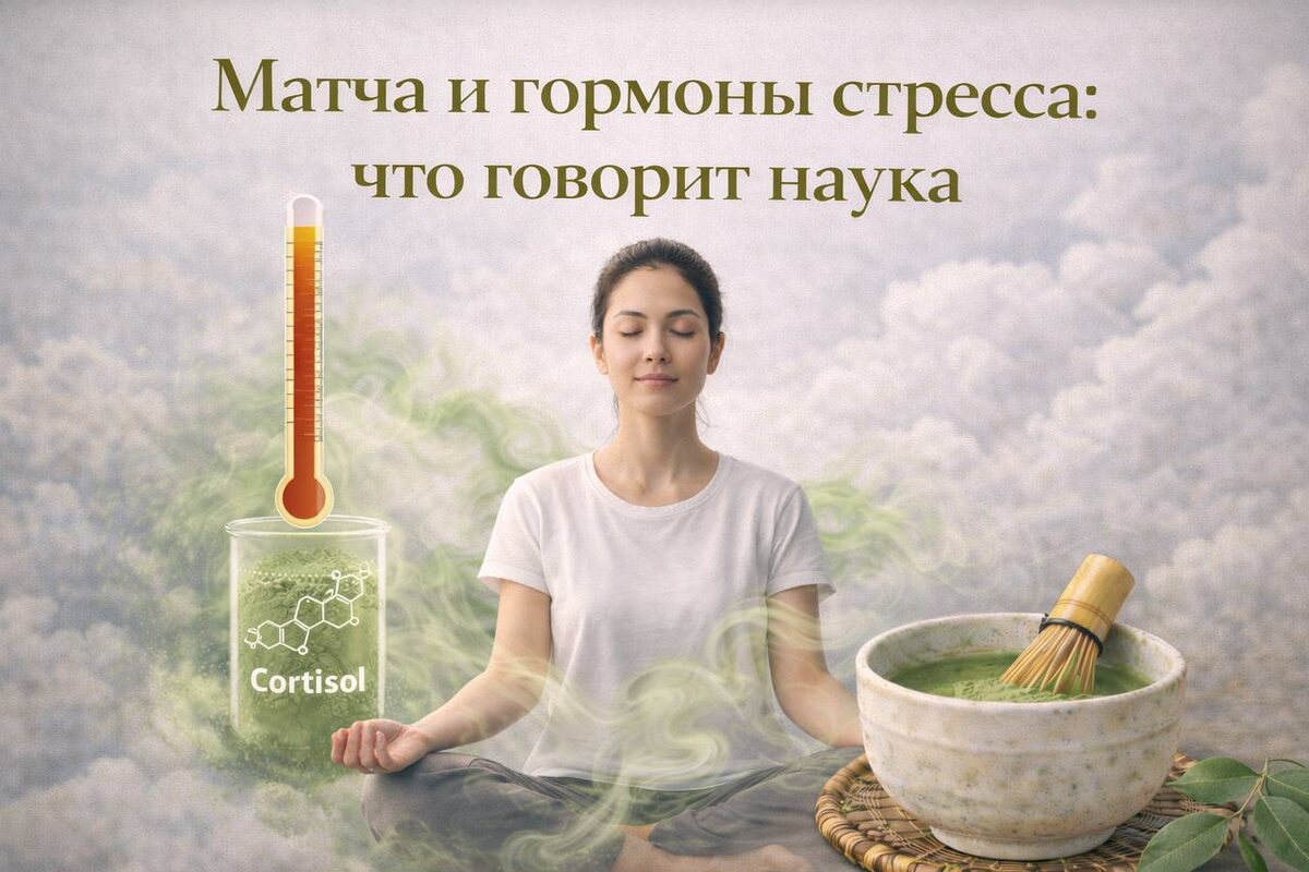 Мы живём в эпоху повышенного напряжения. Кортизол — гормон стресса — стал почти символом нашего времени. Утро начинается с тревоги, день — с дедлайнов, вечер — с усталости. И на этом фоне всё чаще звучит вопрос: можно ли снижать стресс не таблетками, а привычками? Один из неожиданных кандидатов — матча. Напиток дзен-монахов, который сегодня пьют айтишники, йоги и люди, уставшие от кофе. Что же говорит наука: может ли матча действительно влиять на гормоны стресса? ⸻ 🧠 Что такое кортизол и почему он нам мешает Кортизол — это гормон выживания. Он нужен, чтобы: • мобилизовать энергию, • повысить внимание, • подготовить тело к действию. Но проблема XXI века в том, что кортизол стал хроническим. Когда он постоянно высокий, появляются: • тревожность, • усталость, • проблемы со сном, • раздражительность, • ощущение «я всё время на взводе». Поэтому сегодня главный запрос — не «как взбодриться», а как бодрствовать спокойно. ⸻ 🌿 Биохимия матчи: что внутри чашки Матча содержит три ключевых комп
