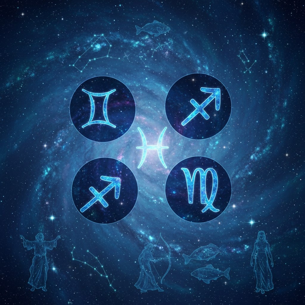 Объединяет эти четыре знака способность подстраиваться под текущие обстоятельства. Если представители фиксированного креста (Телец, Лев, Скорпион, Водолей) с трудом меняют однажды занятую позицию, а кардинальные знаки (Овен, Рак, Весы, Козерог) часто испытывают колебания перед первым шагом, то мутабельные знаки действуют гибко и зачастую интуитивно.