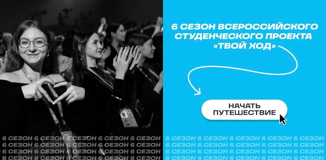 ! Внимание, студенты! 🌟Сегодня в 10:00 у нас в университете стартует новый, шестой сезон Всероссийского студенческого проекта «Твой Ход»! «Твой Ход» это платформа, где твои идеи обретают форму. Новые треки, задания и шанс изменить свое будущее уже сегодня. 🤗Стань частью главного студенческого сообщества страны!