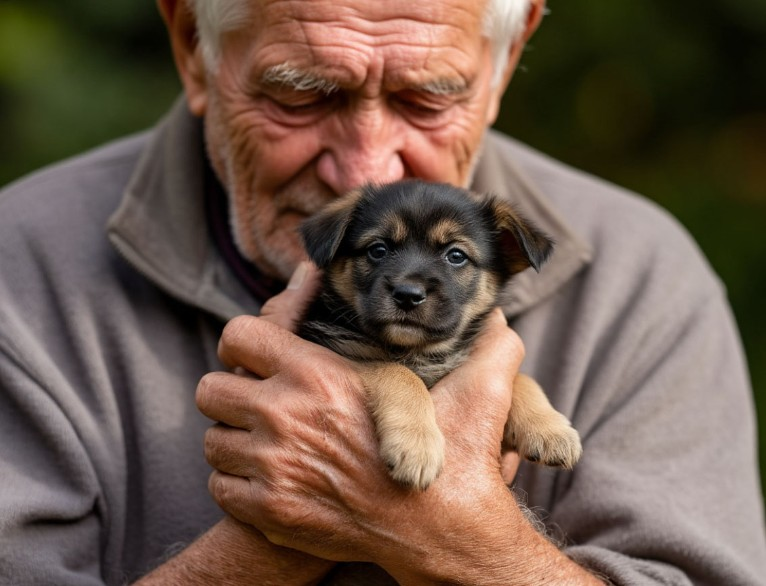Присел, кряхтя, взял осторожно за шкирочку крохотное создание, поднес ближе к глазам. Положил горячим пузком на ладонь. Щенок заерзал, завозил сухим носом.