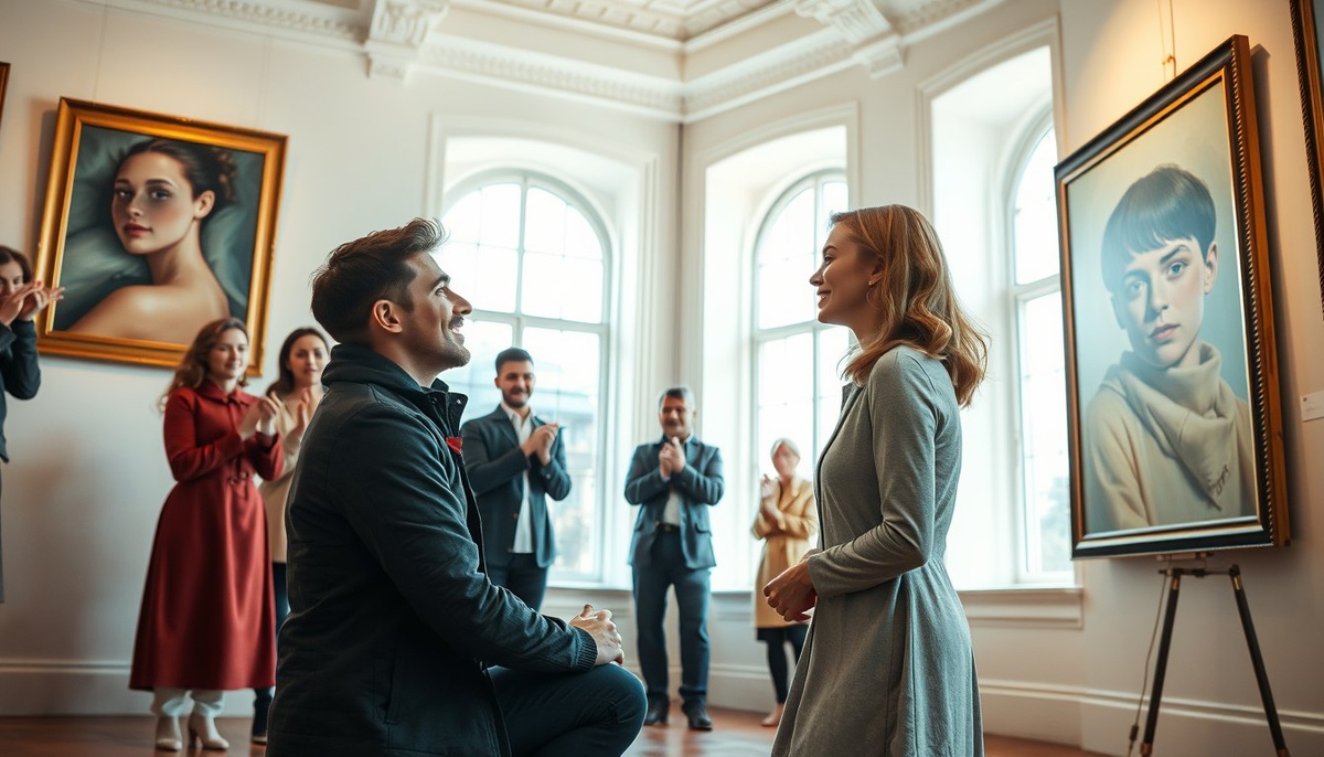 Михаил растерянно огляделся. Несколько посетителей уже с интересом наблюдали за ними. Он вздохнул, опустился на одно колено прямо посреди галереи.