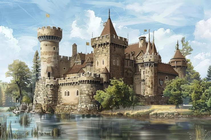 Романтические башни, зубчатые стены, подъёмный мост, прекрасные дамы в длинных платьях, благородные рыцари в сверкающих доспехах. Где-то внизу бренчат на лютнях менестрели, а в огромном камине потрескивает огонь, отбрасывая уютные тени на каменные своды.