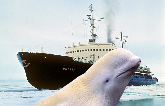 В 1988 году в море Бофорта вблизи мыса Барроу в штате Аляска застряло несколько китов. Американцы пытались бензопилами распилить лед и сделать проход, но потом обратились за помощью к советскому ледоколу «Адмирал Макаров», чтобы уже испробованным методом освободить белух.