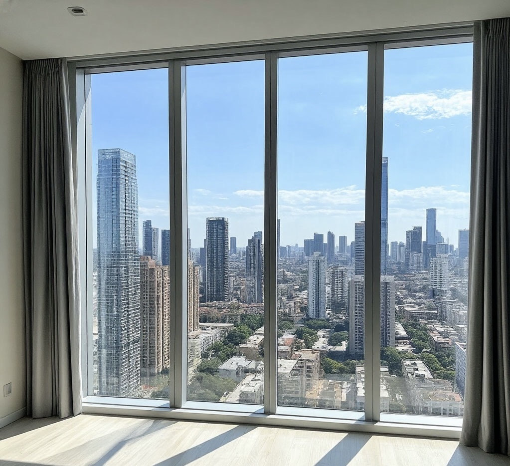 Студия. Маленькая, но дорогая. Панорамное окно во всю стену, за ним - высотки, крыши, утреннее солнце. Мебели почти нет: у стены белый стол на тонких ножках, на нём ноутбук и прозрачный стакан с водой. Рядом стояло черное мягкое кресло. На полу серый ковёр с высоким ворсом. На стене - огромное зеркало в чёрной раме.