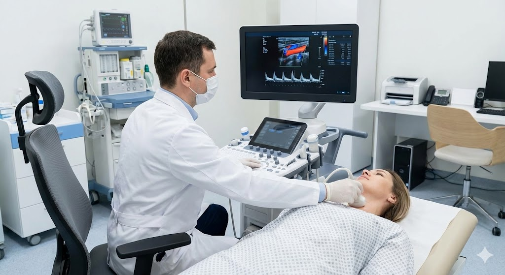 Это абсолютно безболезненная процедура. Вы лежите на кушетке, врач водит датчиком по шее и затылку. Длительность – 20-30 минут. Никакой специальной подготовки не требуется.
