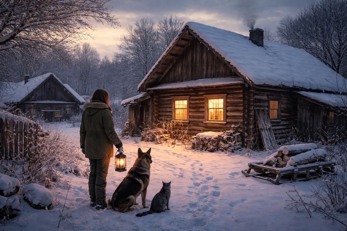 Ночью метель разошлась ещё сильнее. В трубе выл ветер, и этот вой будто подбирался к самому сердцу. Посреди ночи Дружок насторожился. Полина как раз вынырнула из кошмара и заметила напряжённый взгляд, поднятые уши, неподвижную стойку. Она всмотрелась в окно, но за белой стеной снега ничего не различила.