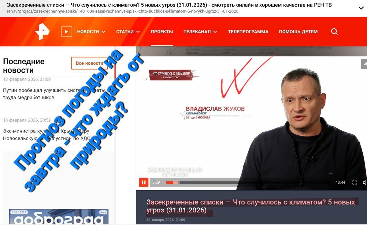 В последние года природа преподносит все новые и новые "сюрпризы" в виде различных аномальных климатических явлений. Мы чаще и чаще думаем: ПРОГНОЗ ПОГОДЫ - ЧТО ЕЩЕ ЖДАТЬ❓ Смотрите передачу полностью, там выступает наш эксперт⬇️ https://ren.tv/project/zasekrechennye-spiski/1401609-zasekrechennye-spiski-chto-sluchilos-s-klimatom-5-novykh-ugroz-31-01-2026