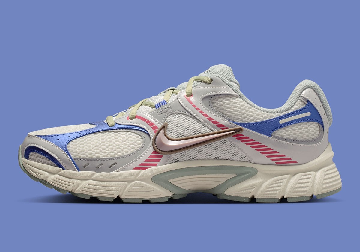 APB представила новую коллаборацию с Nike в рамках коллекции V2K Run совместно с The Whitaker Group. Модель выполнена в цветовой гамме, близкой к основным расцветкам Nike: белая подошва, серебристые накладки на верхней части, а также красные и синие акценты по всей поверхности кроссовка. Символика Swoosh на боковых сторонах выполнена в неаполитанской гамме — розовый и коричневый цвета. Подробности о релизе коллекции, включая дату выхода данной расцветки, пока неизвестны.