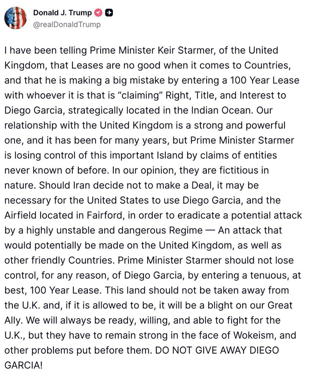 Trump now TRASHING Starmer for lease deal on strategic joint US/UK Indian Ocean Base