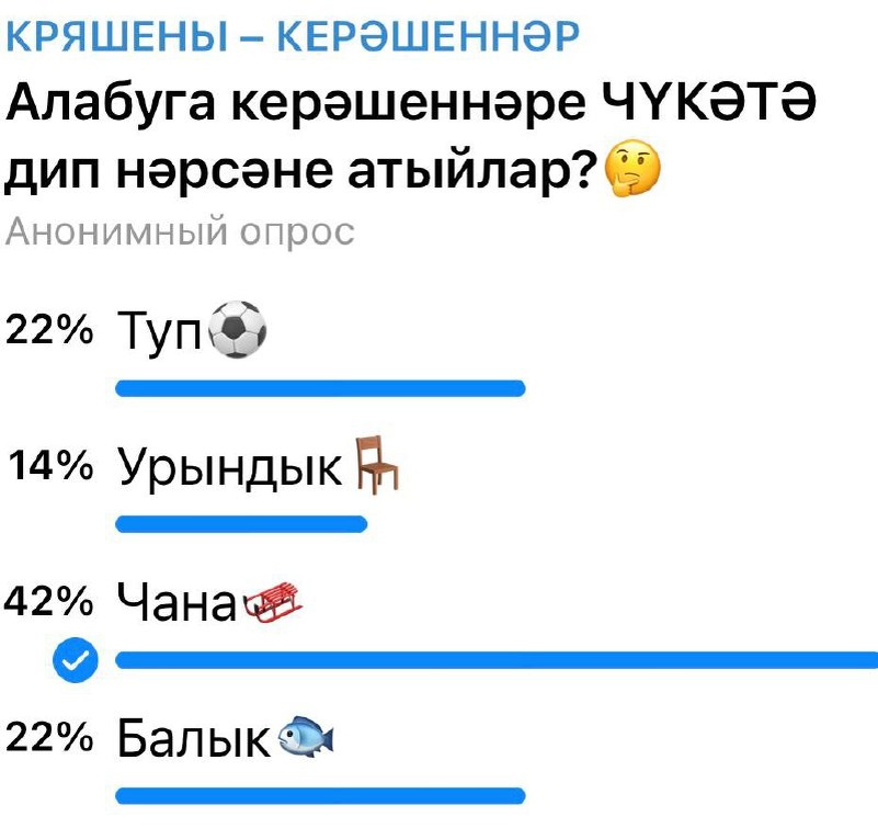 Бүгенге сораштыруга нәтиҗә ясыйк☺️
