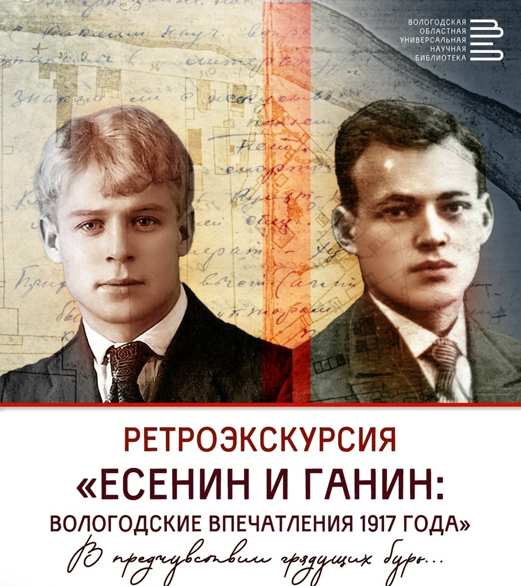 «Есенин и Ганин: вологодские впечатления 1917 года». Вы пройдёте по следам двух поэтов — Сергея Есенина и вологжанина Алексея Ганина — в тот самый момент, когда история делала крутой поворот. 🗓 Лето 1916 и июль 1917: