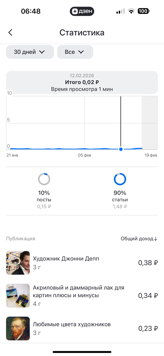 И за последний год (будем брать этот месяц 30 дней) месяц мой доход в Дзене — 1 рубль.