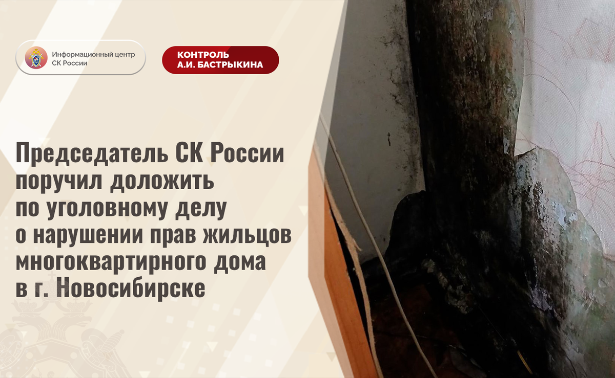 Председатель СК России поручил доложить по уголовному делу о нарушении прав жильцов многоквартирного дома в г. Новосибирске В социальной сети сообщается о нарушении прав жильцов многоквартирного дома на улице Кузьмы Минина в городе Новосибирске. После проведения в 2022 году ремонта фасада здания 1956 года постройки в помещениях промерзают стены, образуются сырость и плесень, что приводит к возникновению у жильцов, в числе которых несовершеннолетние, заболеваний дыхательных путей. Несмотря на имеющиеся нарушения, уполномоченными органами мер к их устранению не принимается. В СУ СК России по Новосибирской области по данному факту возбуждено уголовное дело. Председатель Следственного комитета Российской Федерации Александр Иванович Бастрыкин поручил руководителю СУ СК России по Новосибирской области Евгению Геннадьевичу Долгалеву доложить о ходе и результатах расследования уголовного дела. Исполнение поручения поставлено на контроль в центральном аппарате ведомства. #СледственныйКомитет #