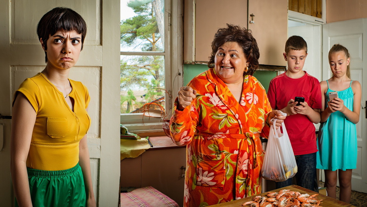 На их кровати — той самой кровати, где они с Серёжей планировали провести романтическую неделю — сидела полная женщина лет шестидесяти с лишним в цветастом халате. Рядом два подростка, мальчик и девочка, уткнулись в телефоны.