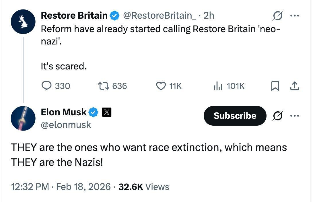 Elon Musk accuses Reform UK of being ‘NAZIS’ because ‘THEY are the ones who want RACE EXTINCTION’