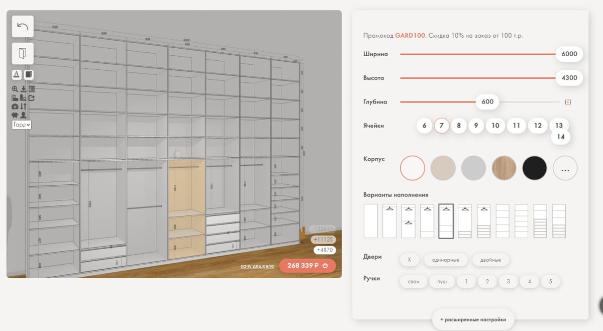 А я начинаю объяснять, что это надо делить на модули и всё такое. ЗАЧЕМ Я ЭТО ДЕЛАЛ? ) Потенциальный клиент подумает, как всё сложно и уйдёт. Что скорее всего и происходило ни раз. Я же могу просто убрать лимиты, и если клиенту надо, то мы ему просто сами поделим всё на модули, как надо в ручном режиме. Завтра выложу безлимитный шкаф в тестовом режиме на отдельной странице. Потестируем гипотезу. Просто мне кажется, что люди, кому нужен шкаф 3 с лишним метра в высоту явно при деньгах, а значит нам с ними по пути)