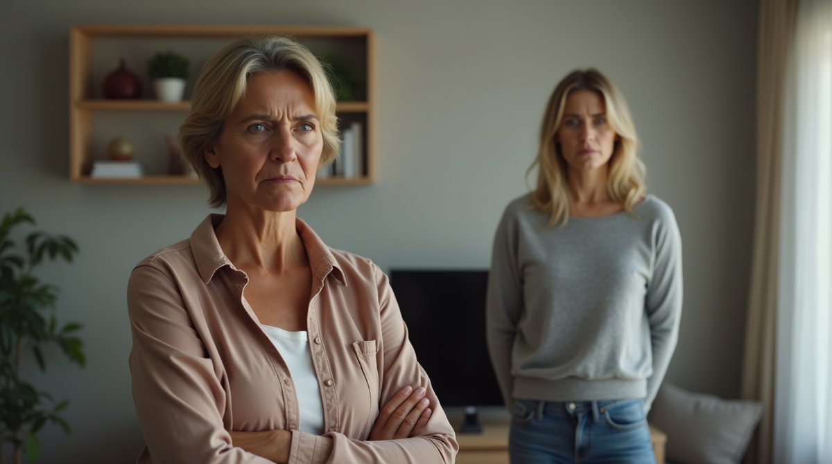 Галина Петровна стояла посреди гостиной, прижимая к груди стопку кружевных салфеток, которые она только что достала из своего старого чемодана. Её лицо, обычно мягкое и улыбчивое, в одно мгновение покрылось красными пятнами. Руки слегка дрожали, и она сделала шаг назад, словно от удара.