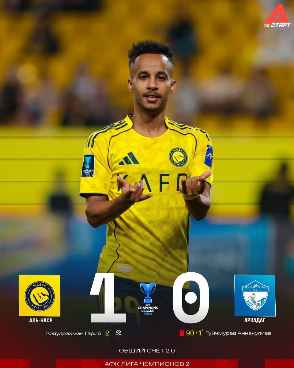 Единственный гол сегодня забил Абдурахман Гариб. Далее у саудовского гранда новое испытание – «Аль-Васл» Руя Витории. Следим как команда Криштиану идет к трофею на телеканалах «Старт» и платформе TVSTART.RU 🖥 Подписывайся на ТВ СТАРТ в MAX📲