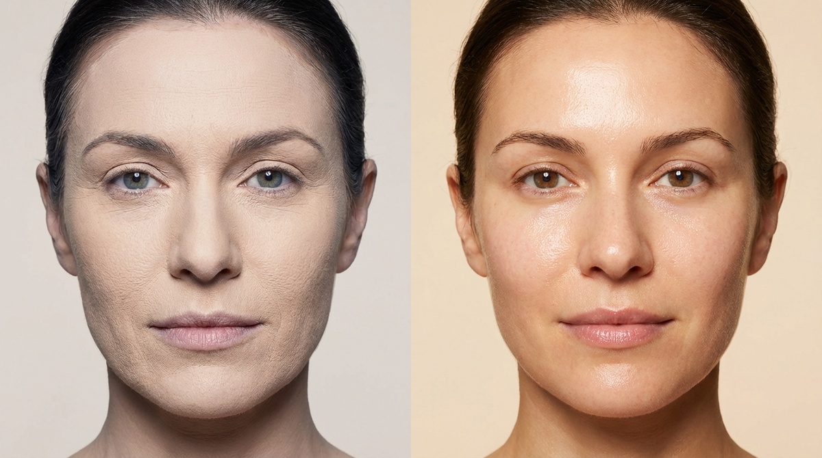 Это самая распространённая ловушка. Кажется логичным: больше покрытие — меньше видно морщин. Но работает ровно наоборот. Плотные матовые текстуры оседают в складках, подчёркивают носогубные линии и «гусиные лапки». Лицо выглядит плоским, неживым — как маска.