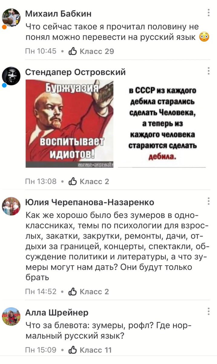 Платформа «Одноклассники», долгое время считавшаяся пространством для старшего поколения, столкнулась с неожиданным наплывом зумеров. Молодёжь активно регистрируется в социальной сети: публикует мемы, трендовые короткие видео со звуками, яркие картинки и обсуждает темы, далёкие от привычных интересов пенсионеров. В результате пользователи старшего поколения всё чаще выражают беспокойство — непривычный стиль общения выбивает их из колеи. По словам пожилых людей, раньше платформа была местом для обмена семейными фото, рецептами и ностальгическими песнями, а теперь в топе — шутки, непонятные без контекста, и ролики с популярными у молодёжи челленджами. Лента кажется многим людям в возрасте хаотичной и лишённой смысла. Ещё одна причина недовольства — изменения в языке общения. Пенсионеры жалуются на обилие сленга, сокращений и англицизмов, которые, по их мнению, искажают русский язык. Фразы вроде «краш», «рофл», «кринж» или «вайб» вызывают недоумение и раздражение: старшему поколению сложн