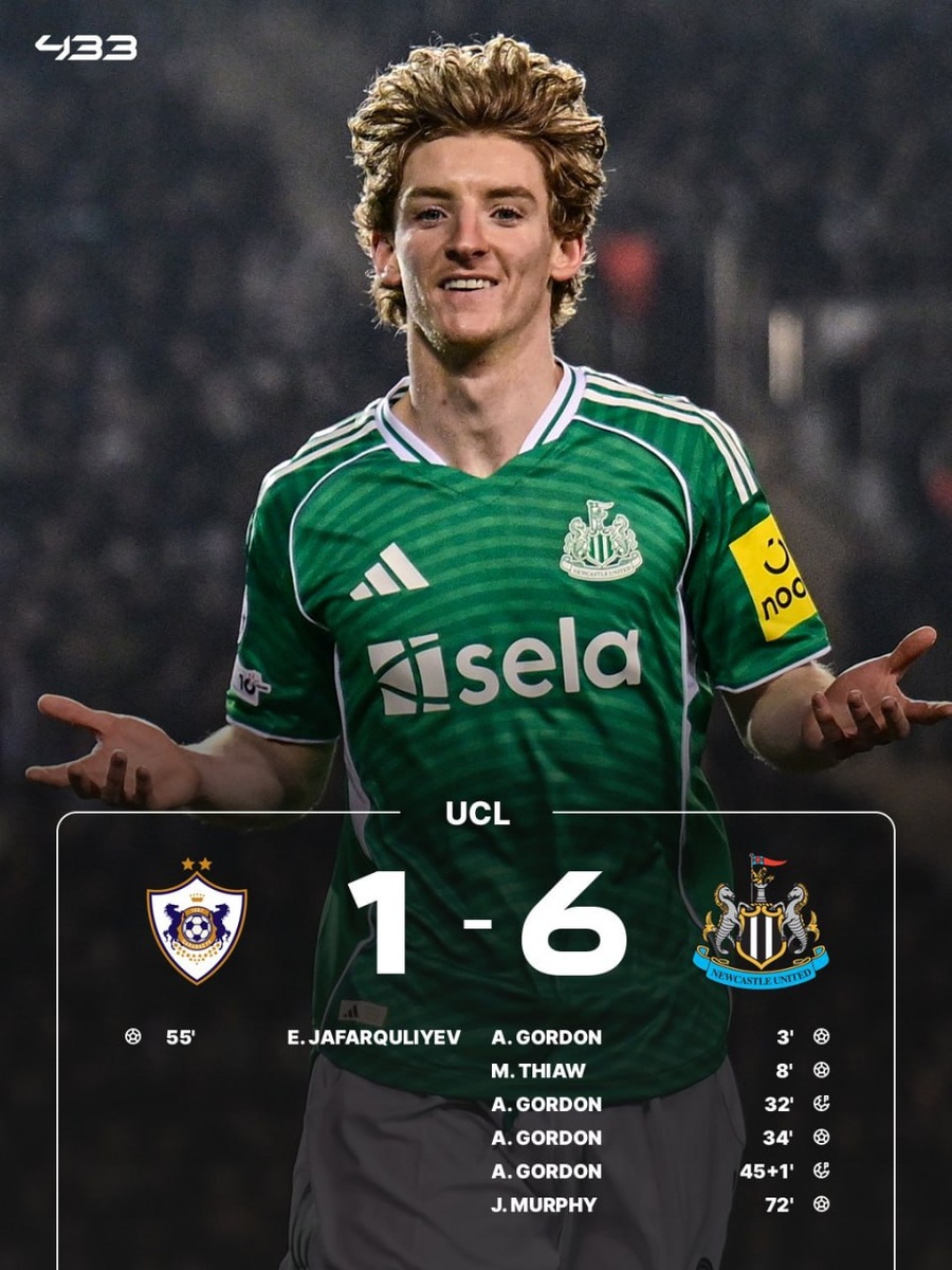 👏Нападающий «Ньюкасла» Энтони Гордон стал вторым игроком в истории Лиги чемпионов УЕФА, которому удалось забить четыре гола в первом тайме