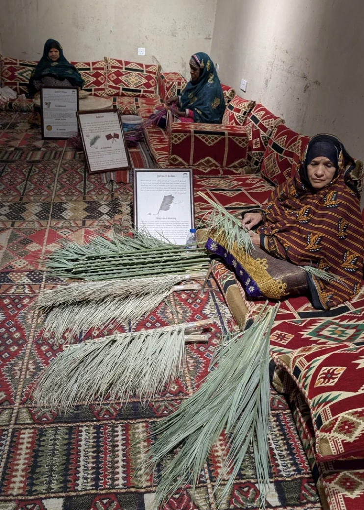 Одним из самых изящных искусств считается изготовление декоративных тесьм и вышивки «син». Женщины вручную переплетают разноцветные нити, создавая орнаменты для платьев, сумок и праздничных нарядов. Такая работа требует терпения, точности и хорошего чувства цвета. Это искусство заключается в украшении одежды женщин и девочек, особенно для особых случаев, чтобы подчеркнуть их великолепие и красоту. Изготовление «син» состоит в создании декоративных элементов разных цветов для украшения женской одежды и сумок. Эти украшения наматываются на катушки, каждая из которых имеет своё название, например катушка «Синейла», содержащая 8 нитей — по 4 с каждой стороны, — искусно переплетённых вокруг центральной полосы, известной как «Машух».Чтобы облегчить процесс из