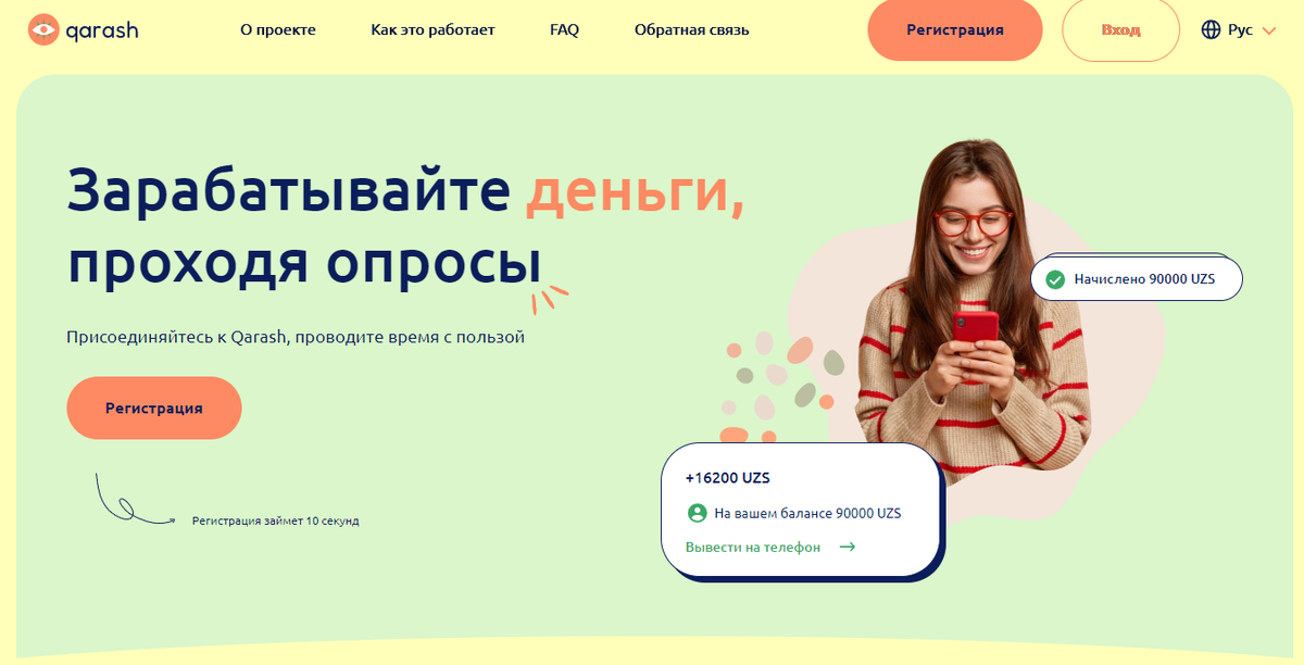 Qarash — узбекистанская платформа для заработка на опросах, которая позиционирует себя как "сообщество". Звучит интересно: проходишь анкеты, отвечаешь на вопросы о своих предпочтениях, а тебе за это платят реальные деньги. Компания утверждает, что помогает людям рассказывать о себе, а бизнесу — понимать своих клиентов. Но давайте честно: называть сайт для микрозаработка "сообществом" — это примерно как называть очередь в супермаркете "культурным собранием".
