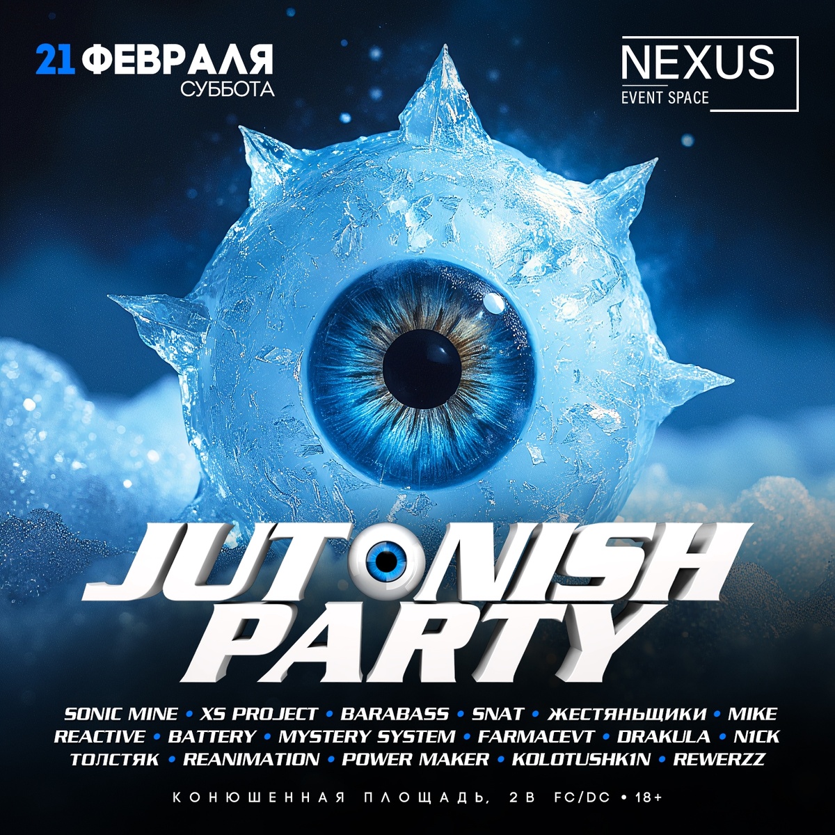 21 февраля, суббота | Event space NEXUS, Санкт-Петербург | Старт в 23:00 В эту ночь сердце Петербурга перестанет быть просто географической точкой. Оно переместится на Конюшенную площадь и задаст ритм на частоте 150 BPM. JUTONISH PARTY — это даже не вечеринка. Это ядерный синтез, где звук превращается в стену, свет уходит в андеграунд, а лазеры разрезают пространство так, будто завтра не наступит. Мы собрали под одной крышей тех, кого вы требуете в личных сообщениях, чьи сеты вы затираете до дыр в наушниках и чьи имена передают из уст в уста как пароль в закрытый клуб. В этот раз играют: 🎧 XS PROJECT - тяжелая артиллерия основного зала