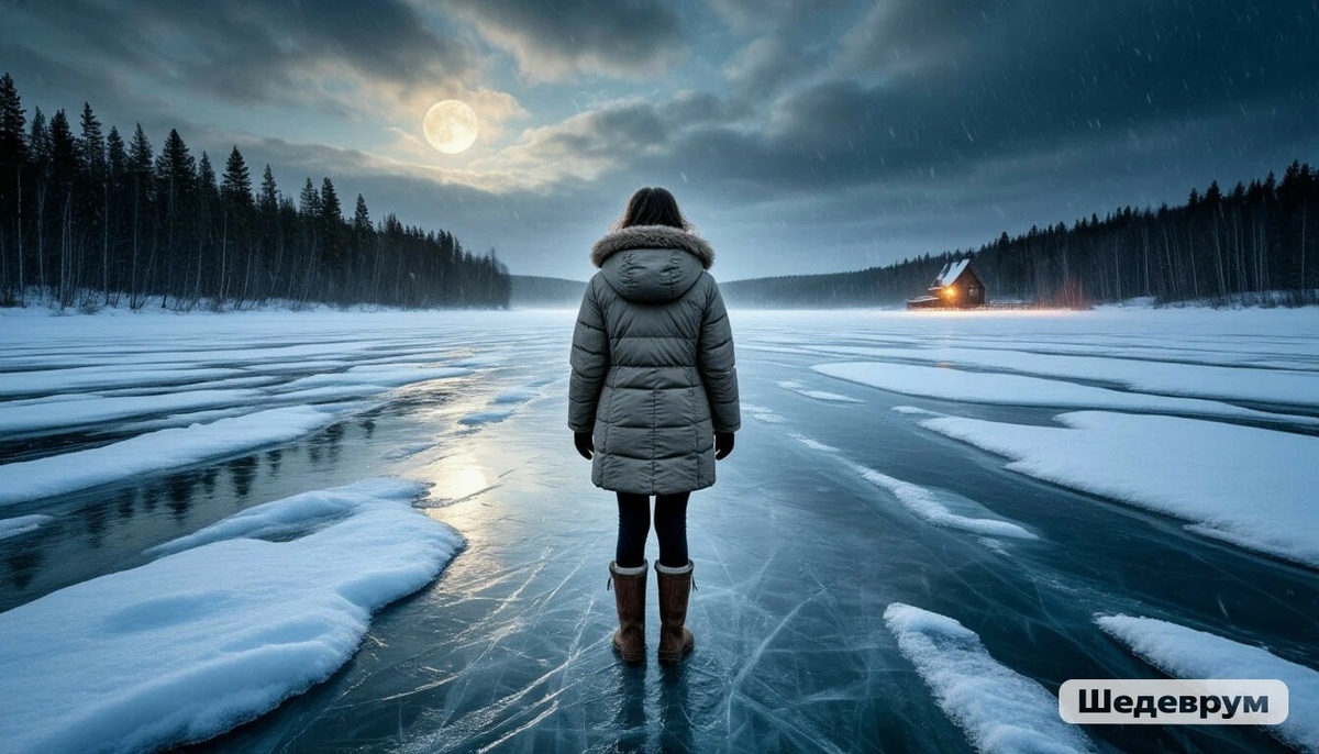 На середине озера она остановилась. Тишина была абсолютной, только лед под ногами иногда вздыхал, как живое существо. Она посмотрела на свои руки — кожа была белой, почти прозрачной. Она подумала: «Если я сейчас упаду и не встану, Павел завтра найдет меня здесь. Он будет плакать над моим телом, будет винить себя, лед, случайность. Он никогда не узнает, куда я шла».