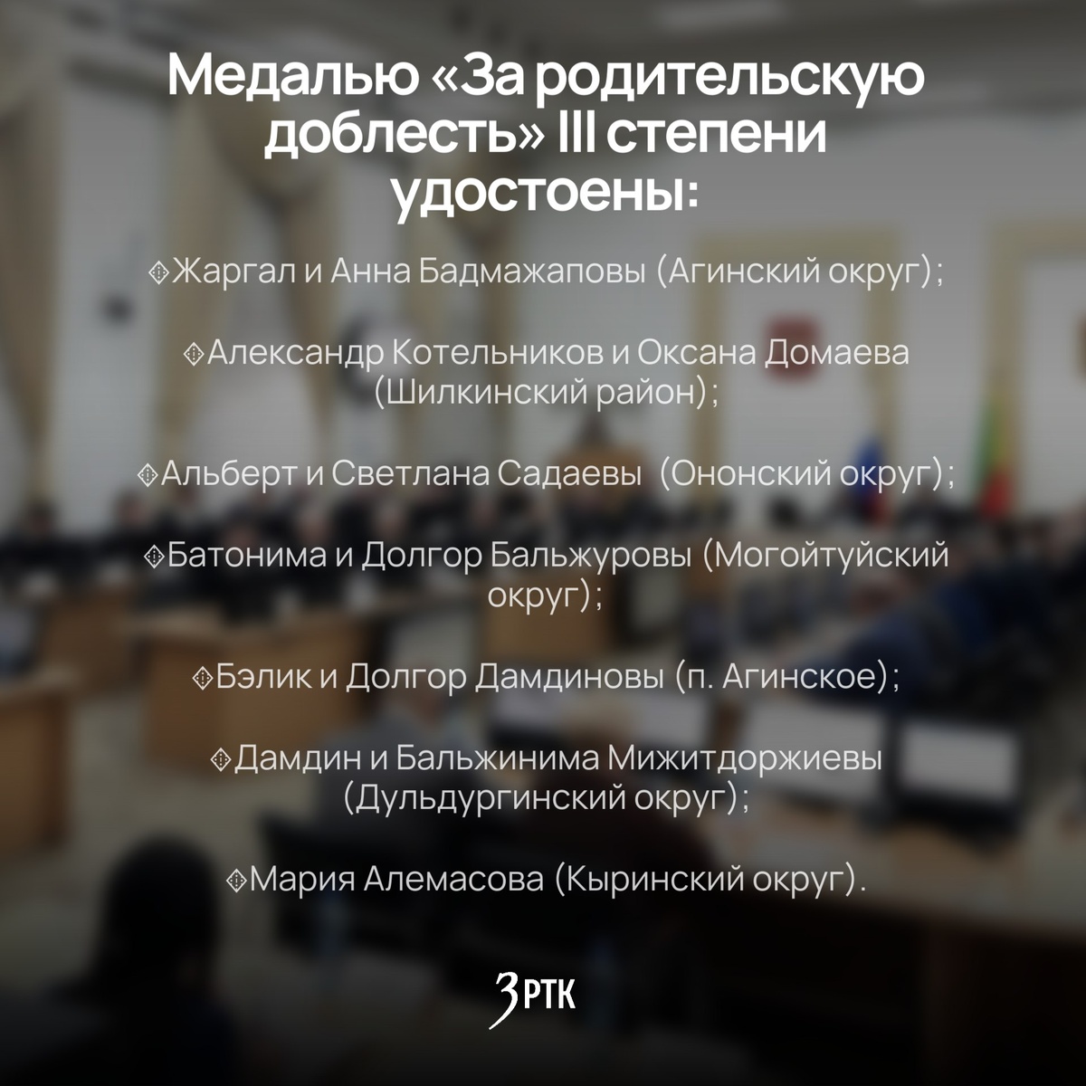 » Решение о награждении приняли на заседании Законодательного собрания. Многодетных родителей отметили за достойное воспитание детей и личный пример в укреплении семейных ценностей. Какие семьи будут награждены — смотрите в карточках. По информации тг-канала «Депутат Забайкалья» ✉️ @zrtk.ru | MAX | VK