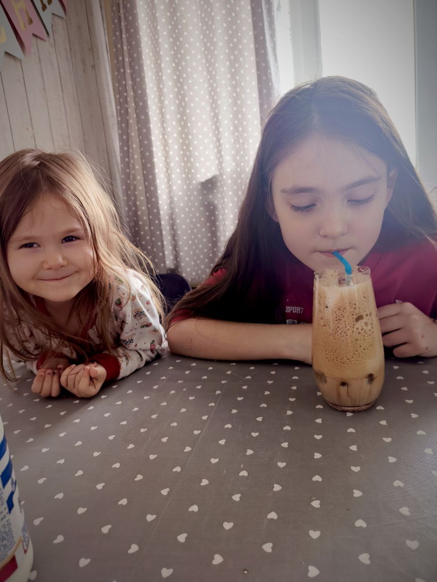 🍹 Кофе и чуть сахара взбиваем в бутылке до пены!!! (Ариане понравился процесс) На дно стакана лёд 🧊 и нашу пену😁, потом молоко 🥛 и готово) ☑️ Вот вам мой честный отзыв 👇 Норм 👌 Не прям, что восторг восторг, но Пойдёт, ради разнообразия 👍 Тем более, если любите вкус кофе!☕ Особенно подойдёт в летний жаркий день ☀️ Я прям точно повторю его летом, полежать в гамаке или погреться на солнышке с коктейлем!!! 🤗 М-м-м🥰 Всем прекрасного дня!!!❤️
