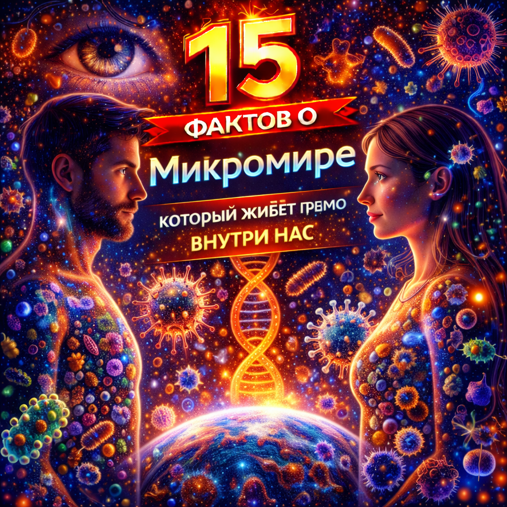 Мы привыкли считать себя самостоятельными организмами, но с точки зрения биологии человек — это целая экосистема. Внутри нас живут триллионы микроорганизмов: бактерии, вирусы, грибки и другие формы жизни. Их совокупность называют микробиомом. Учёные всё чаще говорят о том, что без этого микромира мы просто не смогли бы существовать. И чем больше исследований проводится, тем удивительнее становятся открытия. Ниже — 15 фактов о микромире, который живёт внутри нас и влияет на нашу жизнь гораздо сильнее, чем мы привыкли думать.