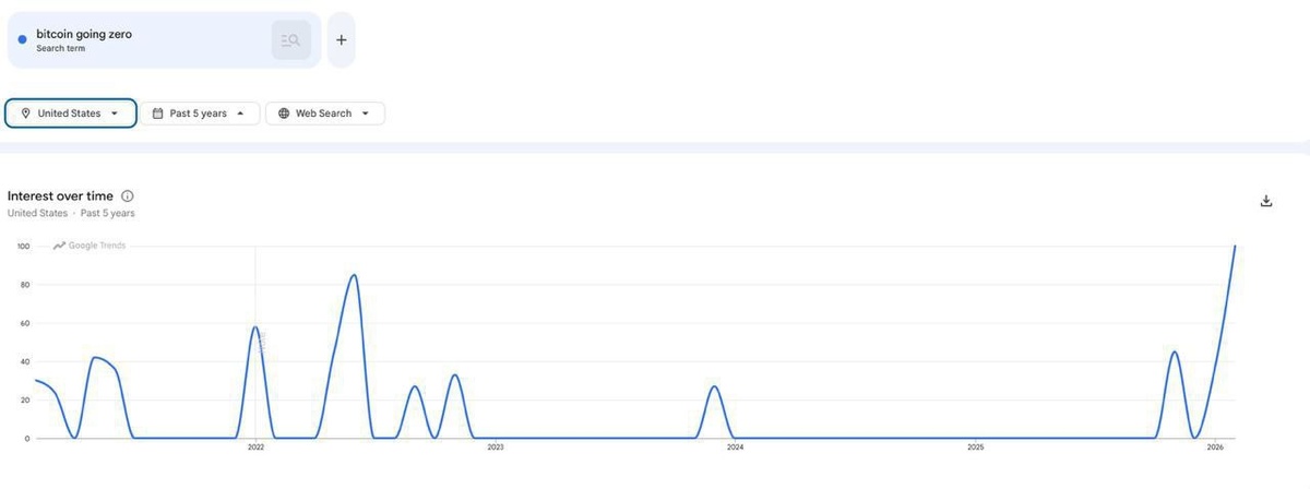 🔍 Search interest for "$BTC going to zero" has surpassed its 2022 peak, according to Google Trends data.