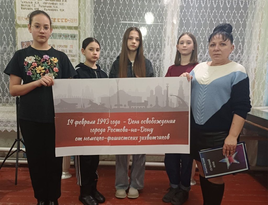 В Вишневском сельском клубе прошла тематическая программа «Память нашу не стереть годами», посвященная событиям февраля 1943 года. Культорганизатор Александра Козинкова рассказала собравшимся о тяжелых боях за Ростов-на-Дону, героизме советских солдат и огромных жертвах среди мирного населения. В ходе мероприятия были освещены ключевые эпизоды обороны города, а также сложный период его послевоенного восстановления. Освобождение Ростова-на-Дону 14 февраля 1943 года стало важным этапом в борьбе за контроль над южными подступами к стране. ЧИТАЙТЕ ТАКЖЕ: Школьники Морозовского района узнали секреты изготовления валенок