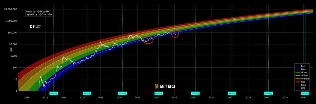 Bitcoin has reached an "extremely oversold" condition on the rainbow chart, according to technical analysis.