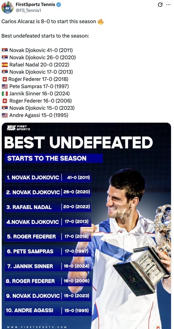 ⚡ Карлос Алькарас начал этот сезон со счётом 8-0
