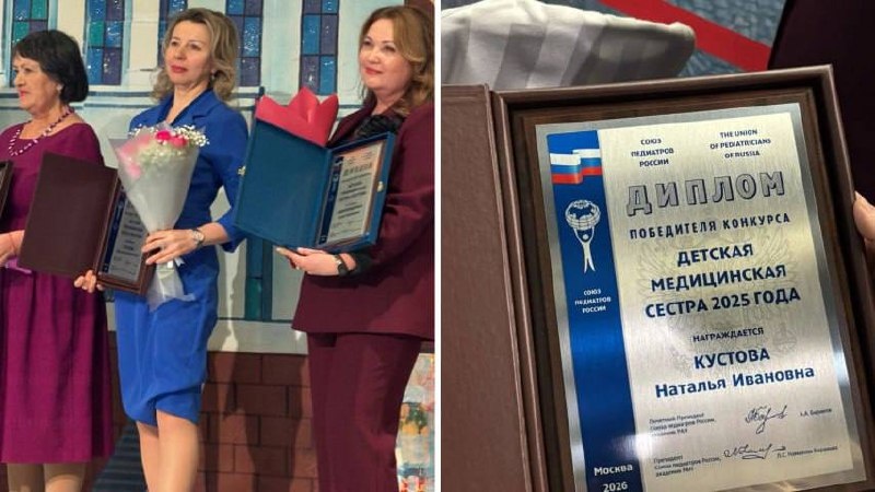 👏 За почётное звание боролись десятки специалистов со всей России, однако победу в профессиональном конкурсе одержала главная медсестра краевого центра охраны материнства и детства Наталья Кустова (на фото в центре). Награждение состоялось в Москве на конгрессе педиатров России, сообщили в региональном Минздраве. Фото: @minzdrav24 🤩Новости Сибири | Прислать новость 💜 Мы в MAX