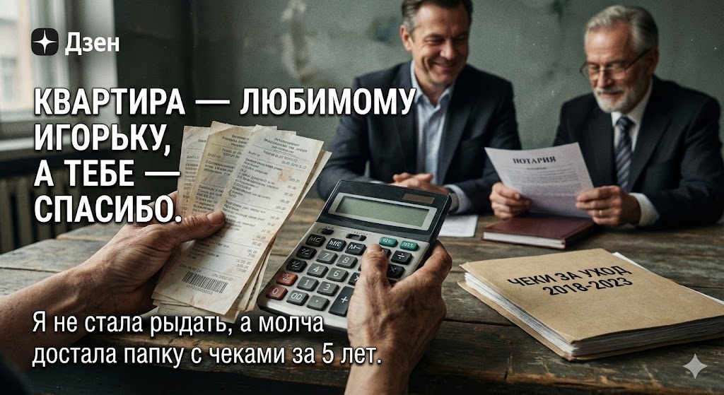 Лена вспомнила. Полгода назад тетя попросила вызвать нотариуса, сказала, что нужно "оформить доверенность на пенсию". Лена тогда ушла в магазин, чтобы не мешать. Оказалось, тетя переписала завещание.