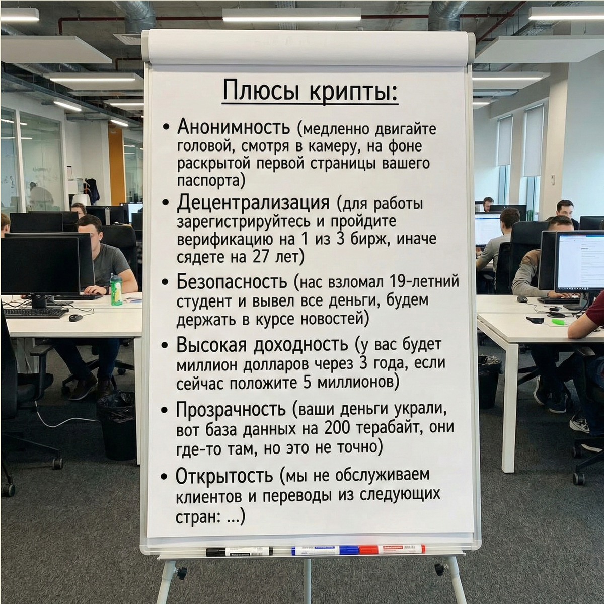Это все фигня и разводка. Это пирамида и ненастоящее. Это все фантики и глупость. Так, обычно, говорят мужики, работающие в найме за еду и аренду, или 15-й год подряд занимающиеся каким-то микробизнесом с 15% доходностью на капитал при инфляции 10%. Не желая признавать факта, что надо искать что-то другое, чтобы иметь хотя бы какие-то шансы обогатиться или хотя бы купить квартиру. И даже если бы это все была пирамида прям - это не повод на этом не заработать.