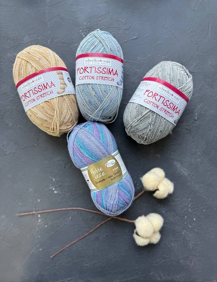 ? Тогда вам стоит присмотреться к облегченным составам с шелком, бамбуком, хлопком и лиоцелом. 🌿Austermann Fortissima Cotton Stretch 🌿Relana Flotte Socke Классическая носочная пряжа с приятным ощущением шерсти и практически половиной хлопка в составе. Хорошо подойдет как для однотонных носков, так и для жаккардовых. 🌿Regia Premium Silk 🌿Regia Premium Silk Colour 🌿Lana Grossa Seta Шелк в составе не только дарит комфортную прохладу, но и придает полотну легкое свечение изнутри. 🌿Regia Bamboo Вискоза из бамбука добавляет пластичности и нежности. Такая пряже хорошо подойдет и для плечевых изделий даже для самой чувствительной кожи. 🌿Concept by Katia Aiti Socks Лиоцелл - вискоза из эвкалипта. Волокно получается мягким, не электризуется, не вызывает аллергии и обладает бактерицидными свойствами. Не смотря на свою нежность, лиоцелл прочен, устойчив к стиркам, но требует деликатного ухода.