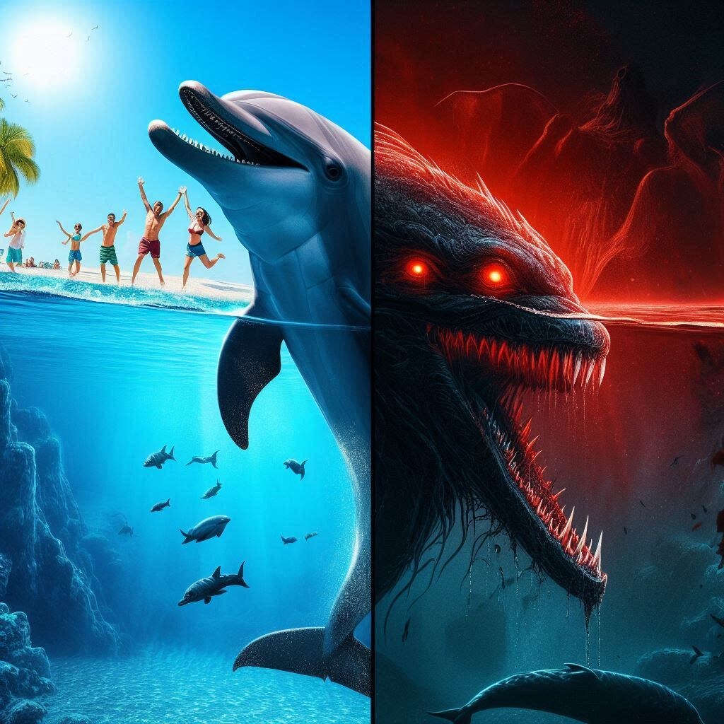 Дельфины — не злые и не добрые. Они сложные. Умные до жути. Они могут спасти тонущего человека (такие случаи есть), а могут забить морскую свинью насмерть просто от скуки.