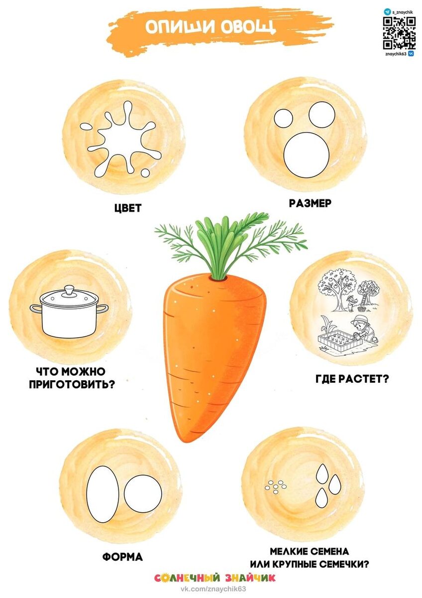 Нашла вот такие готовые шаблончики для описания овощей.